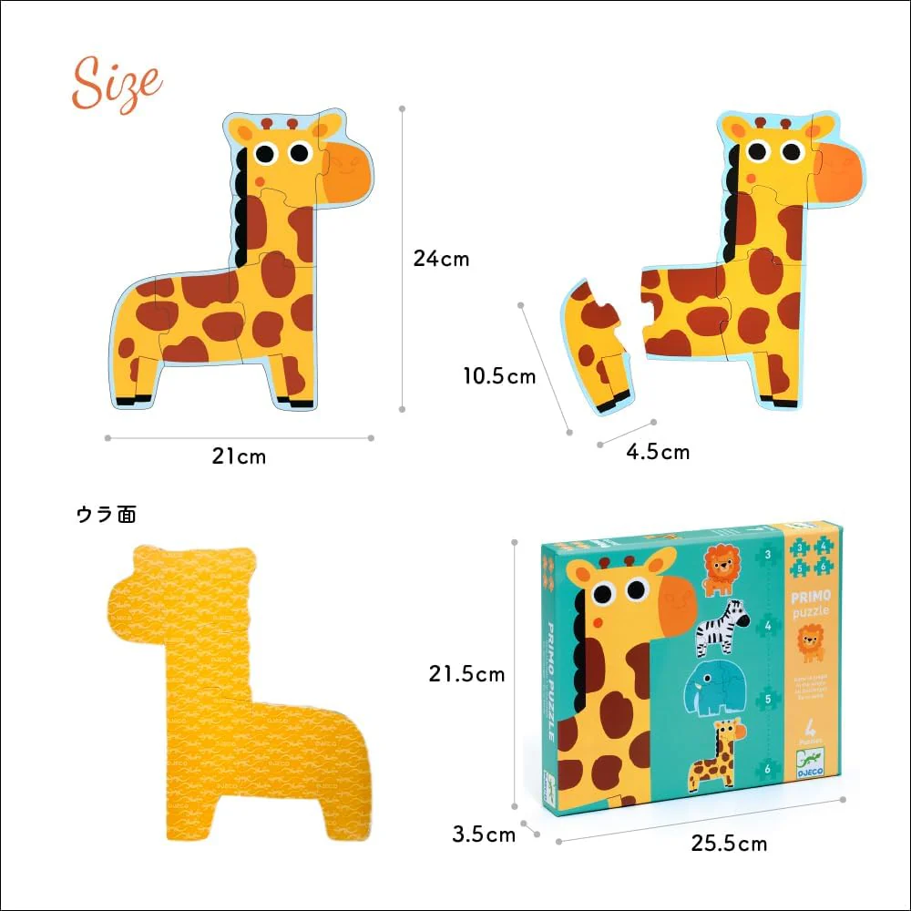 Puzzles de 3, 4, 5 y 6 piezas, para aumentar la dificultad a medida que se gana habilidad en el armado de los puzzles.