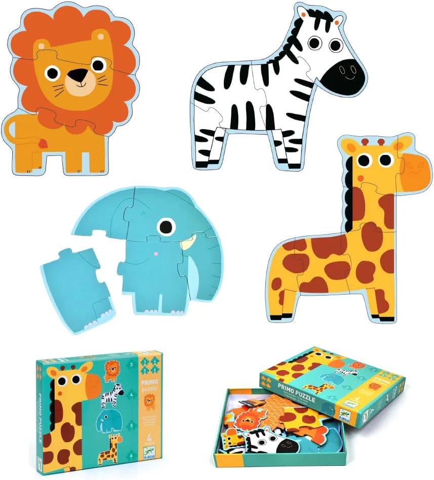 4 puzzles progresivos de animales de la savana.