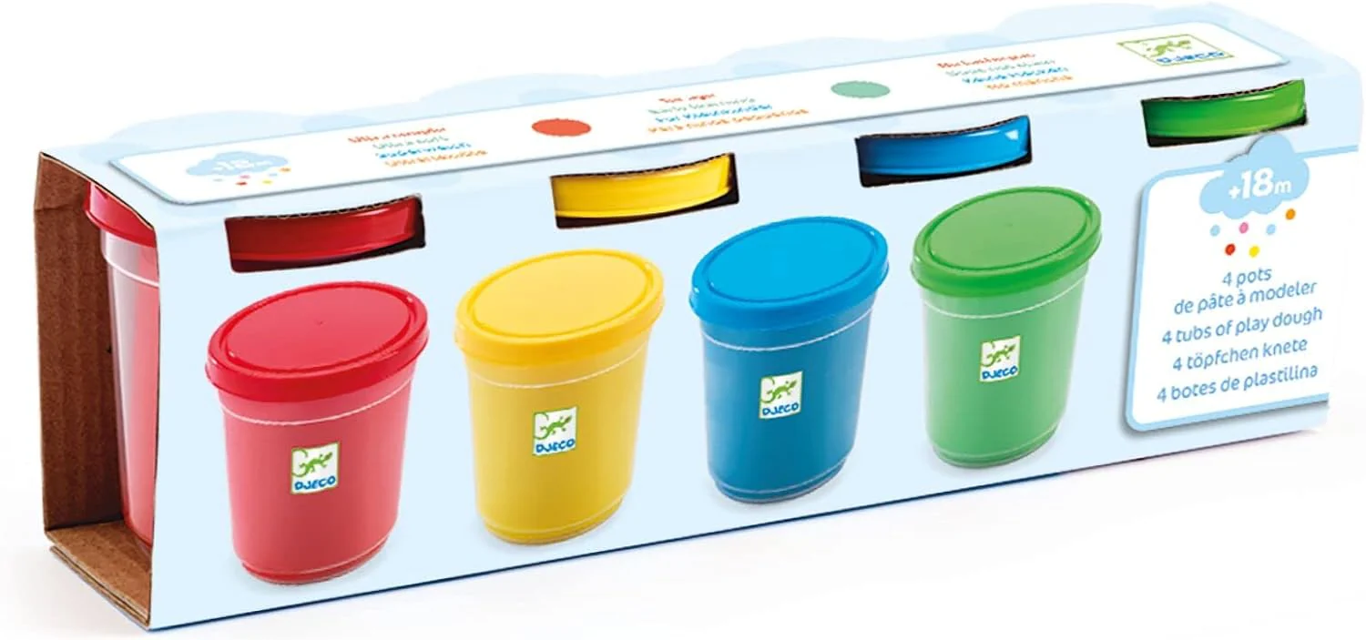 Un juego de 4 frascos de plasticina. Masas ultra flexibles, suaves y perfumadas.