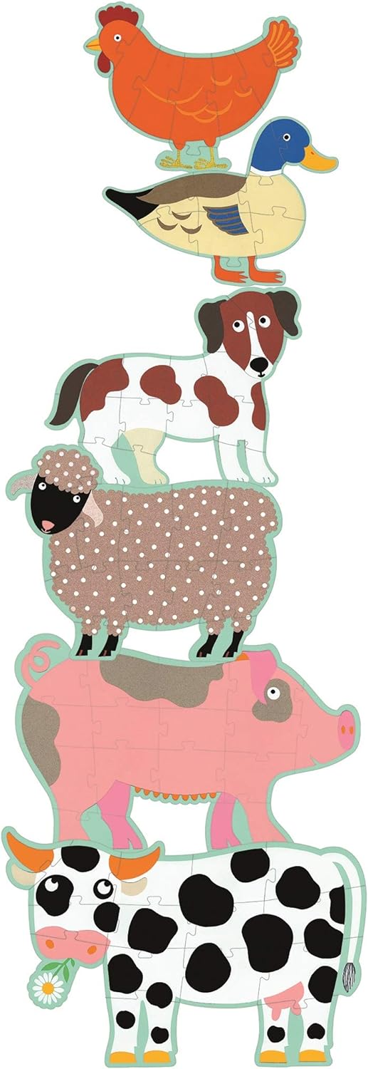 6 puzzles progresivos para descubrir los animales de la granja.