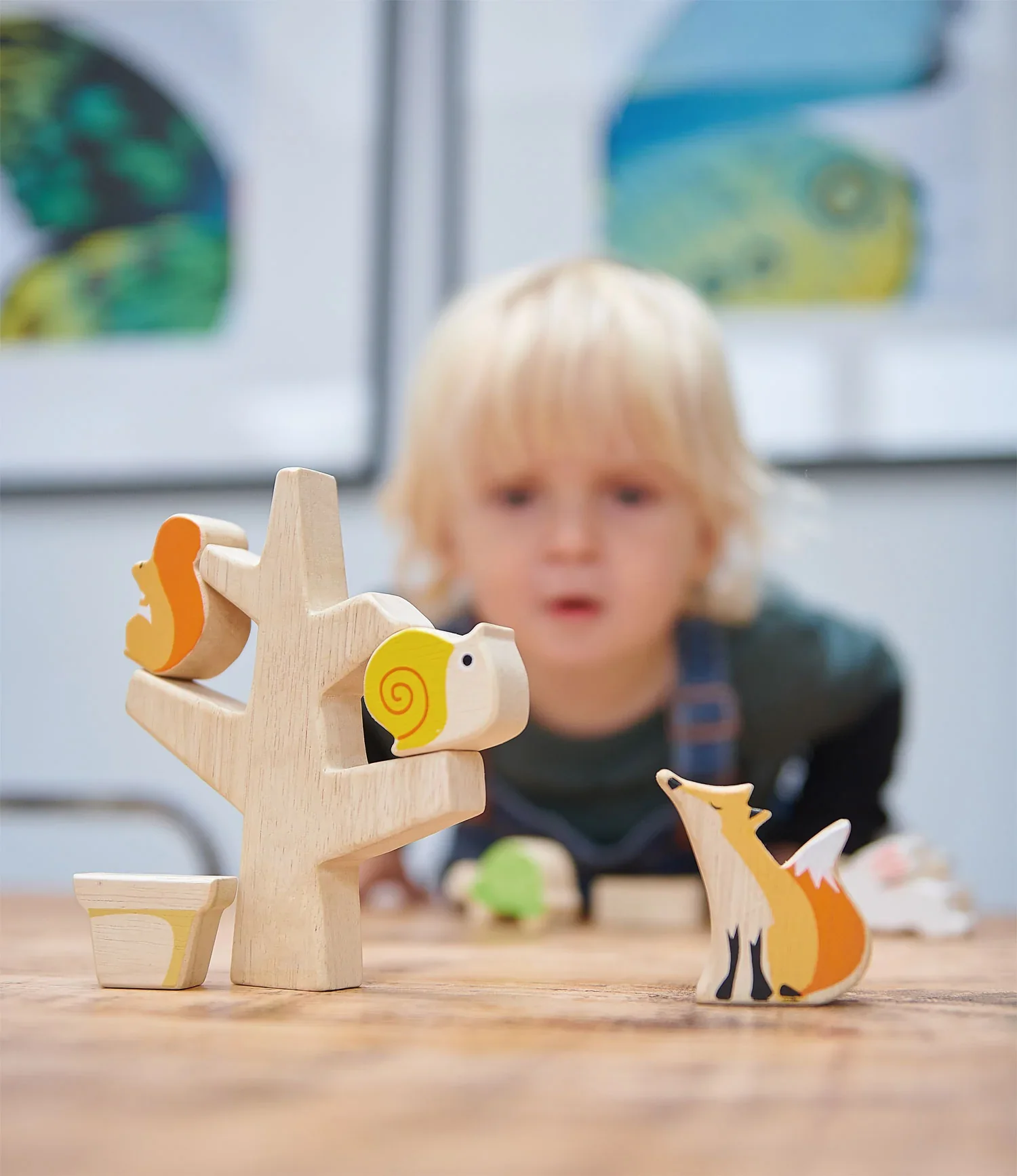 ¡Salí con todos los amigos del jardín e intentá apilarlos a todos en el árbol sin caerse!