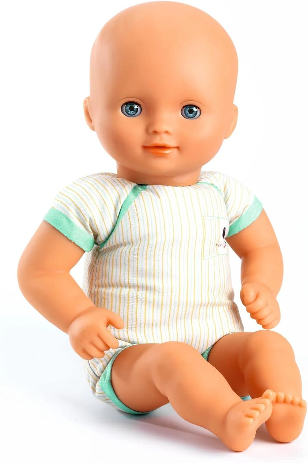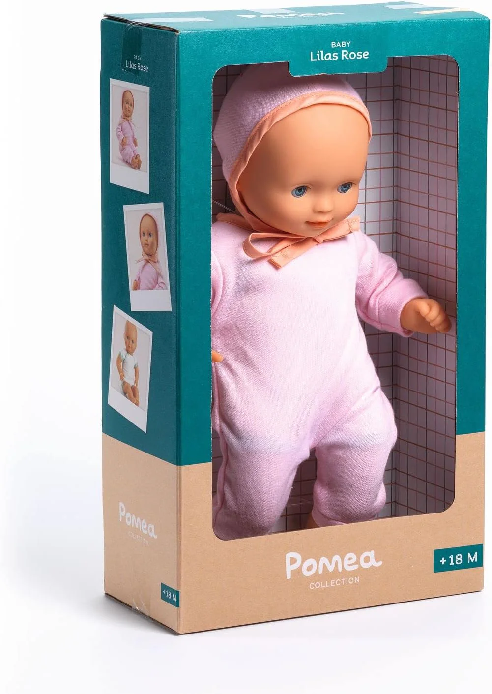 Bebé Lilas Rose es una muñeca para niños a partir de los 18 meses. Su tamaño (32 cm) se adapta perfectamente a los brazos pequeños. Su rostro, brazos y piernas están hechos de vinilo muy suave, agradable al tacto. Sus ojos se cierran cuando se la acuesta de espaldas.
