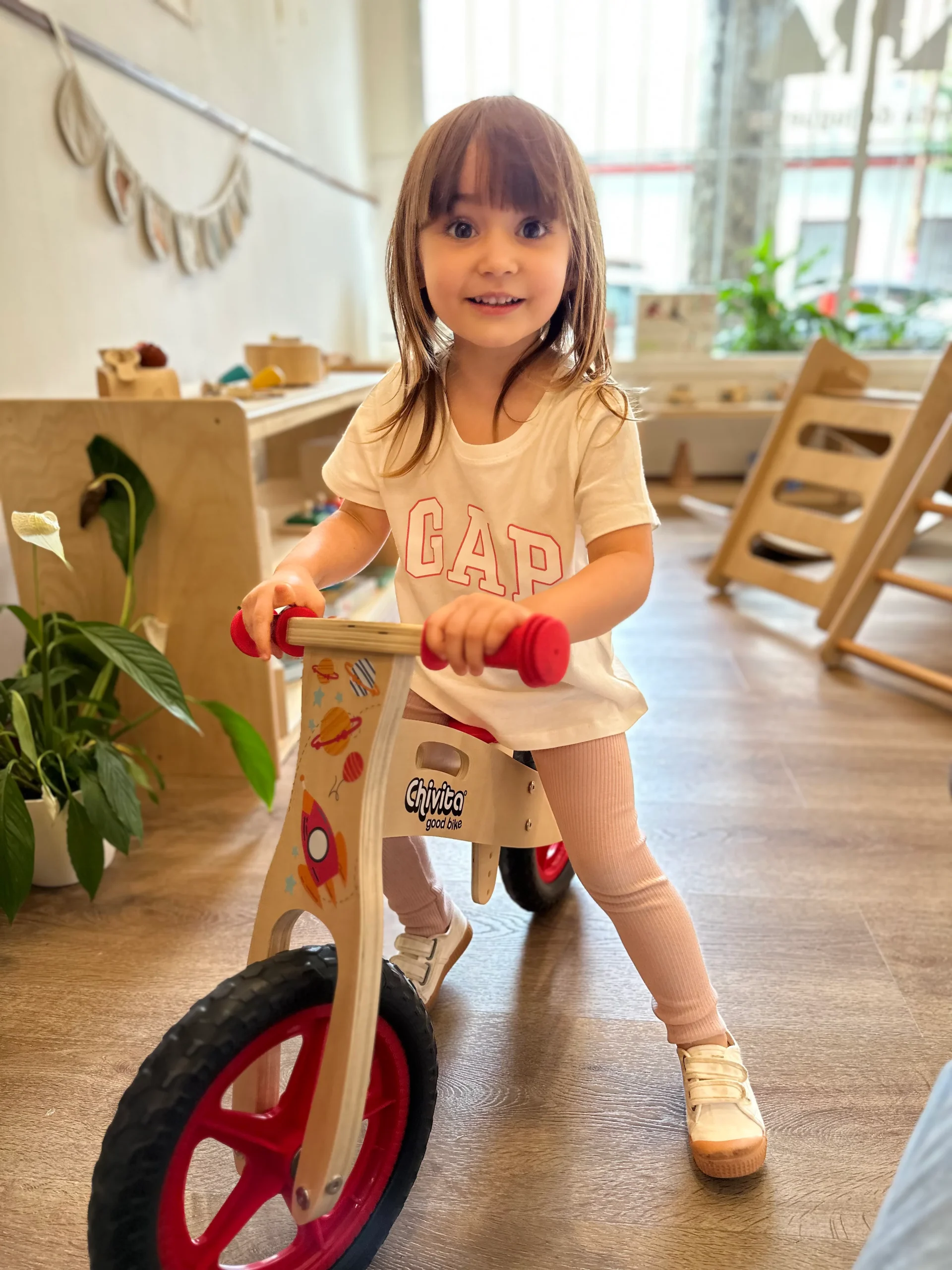 Es una bici sin pedales para que puedan usarla desde los más peques de la familia, de forma totalmente autónoma. Está confeccionada con madera liviana para que ellos puedan trasladarla solos sin problemas.