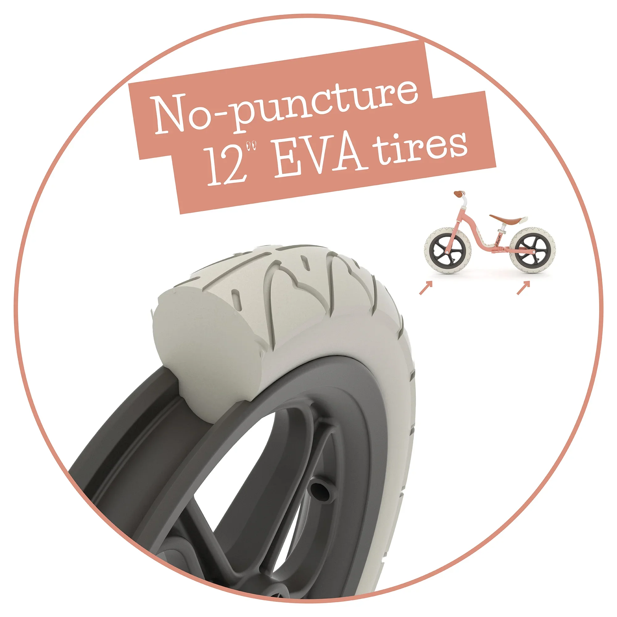 Tiene ruedas de 12″ a prueba de pinchazos que no se deben inflar, y un marco que pesa sólo 3 kg.