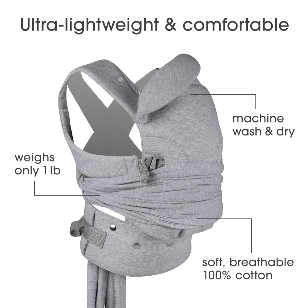 Versátil y ligero para una máxima comodidad: tela transpirable 100% algodón y peso inferior a una libra, ideal para paseos, recados y viajes; combina la comodidad de una envoltura de bebé, la simplicidad de un portabebés estructurado y la versatilidad de un sistema todo en uno.