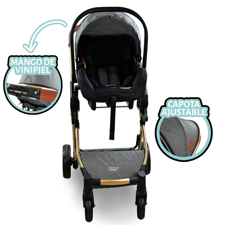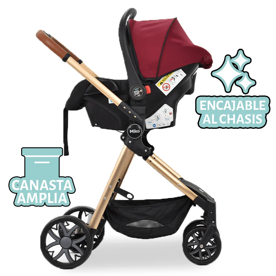 • Incluye un portabebés/ autoasiento con base.