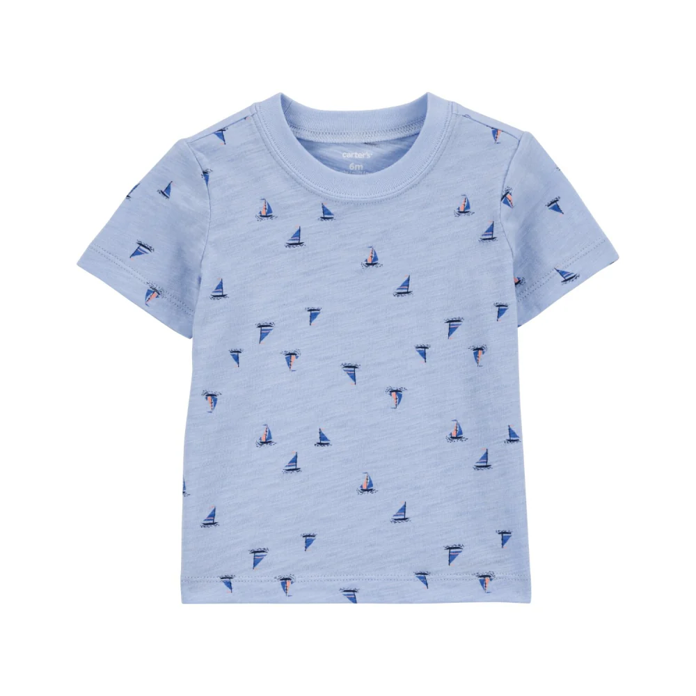 Confeccionado en suave algodón, este conjunto se completa con una camisa de manga corta para llevar debajo de un suave overol corto.