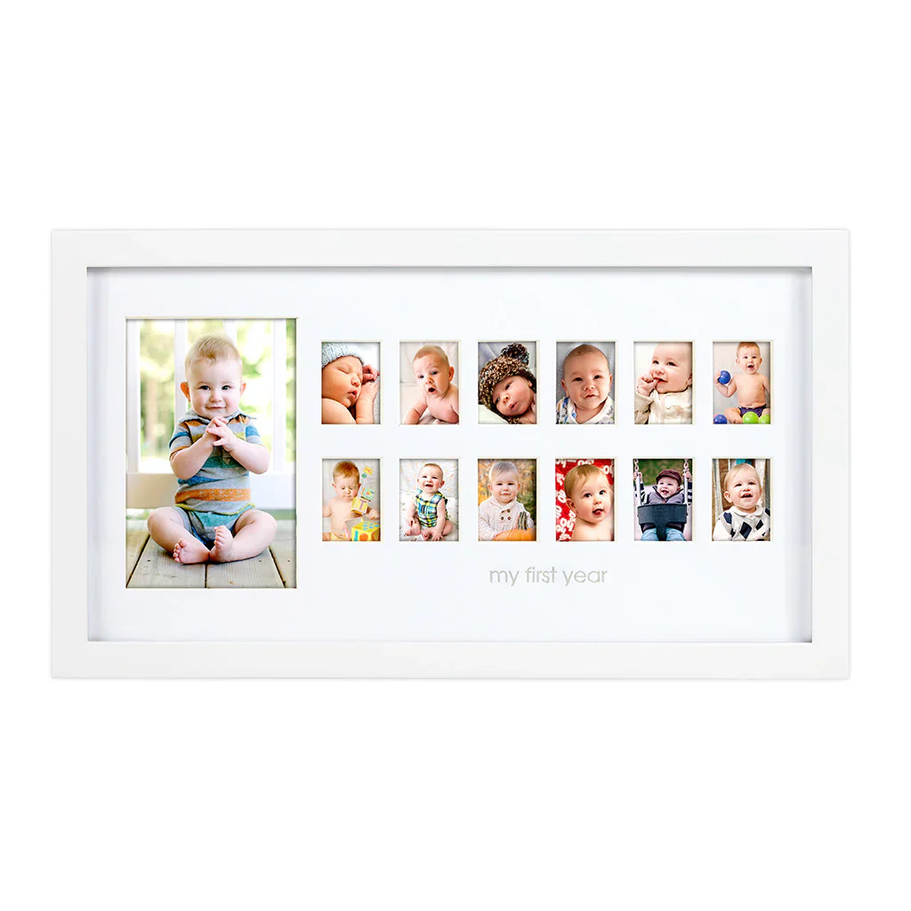 ¡El primer año del bebé pasa en un instante! Asegúrese de capturar todos y cada uno de los momentos con el marco de momentos fotográficos de Pearhead. Este moderno marco de madera blanco tiene capacidad para 12 fotos pequeñas de 1.25 «x 1.75» y 1 foto grande de 4 «x 6» para resaltar cada momento del primer año del bebé. Se incluye un tapete biselado sin ácido para bordear cada imagen. ¡No dejes pasar ningún momento adorable, divertido y memorable! Toma una foto cada mes y agrégala al collage o agrega imágenes todas a la vez y muéstrala con orgullo en tu hogar. «Mi primer año» está impreso en plata en la alfombra blanca a lo largo. Este elegante marco de fotos de madera maciza es perfecto para colgarlo en su hogar y en la habitación de su bebé con la percha de dientes de sierra incluida.