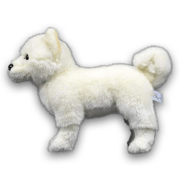 ¡Ese pequeño lobo blanco perdió a su mamá! Está buscando un nuevo hogar… ¡Entonces adopta este peluche de lobo blanco! Sueña con acurrucarse en el frío del Ártico…