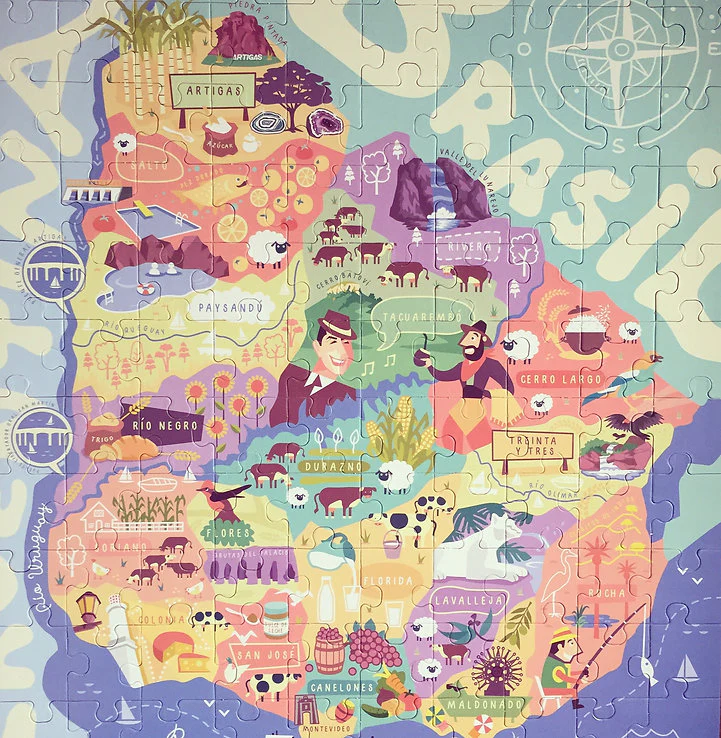 - Puzzle diseñado en Uruguay. Fue ideado por PIKA e ilustrado por Lucía Estevez.