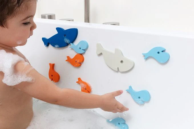 Así, el puzzle de baño QUUT cabe tanto en la bañera como en la ducha. Los pequeños se divertirán asociando los diferentes tamaños y/o colores de los tiburones para desarrollar su destreza.