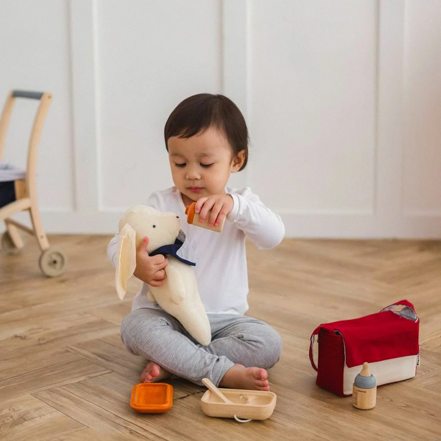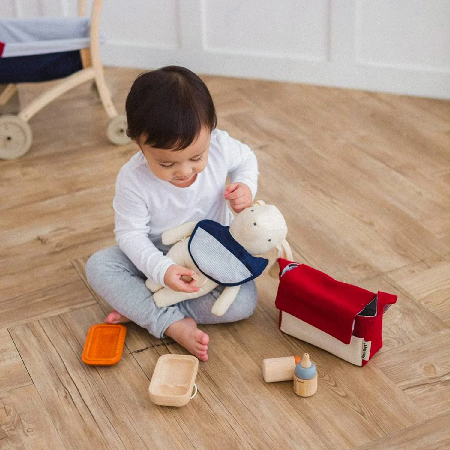 Plantoys fabrica de forma sostenible en Tailandia utilizando madera de caucho sin productos químicos, pegamento sin formaldehído, pigmentos orgánicos y tintes a base de agua.