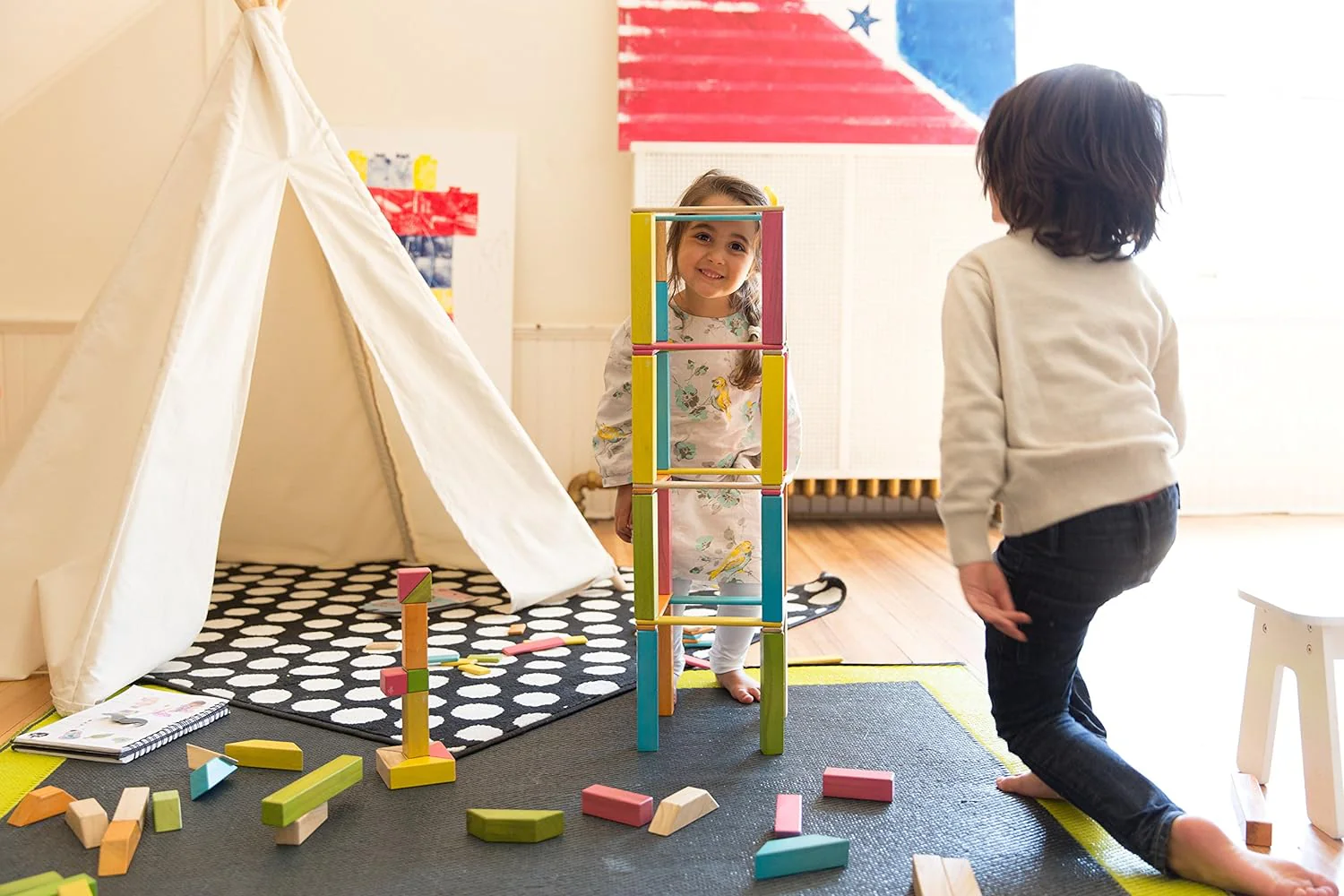 Tegu apoya el desarrollo de niños y niñas a lo largo del tiempo a través del juego: habilidades motrices finas mejoradas, reconocimiento de patrones, equilibrio, sentido de escala, juego imaginativo, resolución de problemas, narración de cuentos.