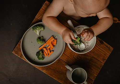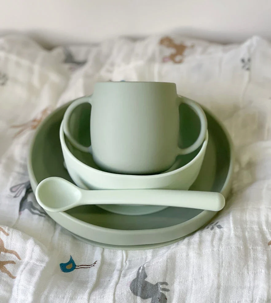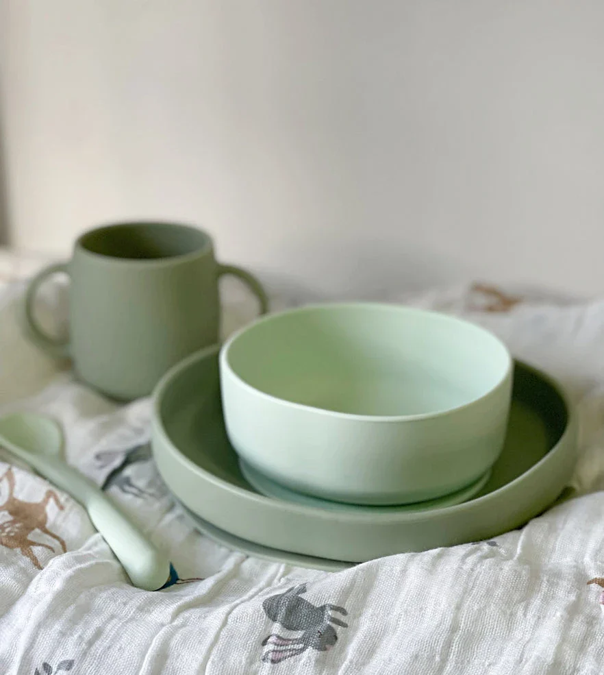 Vajilla de silicona suave y flexible, para bebés a partir de 6 meses, ideal para comenzar con la alimentación complementaria.