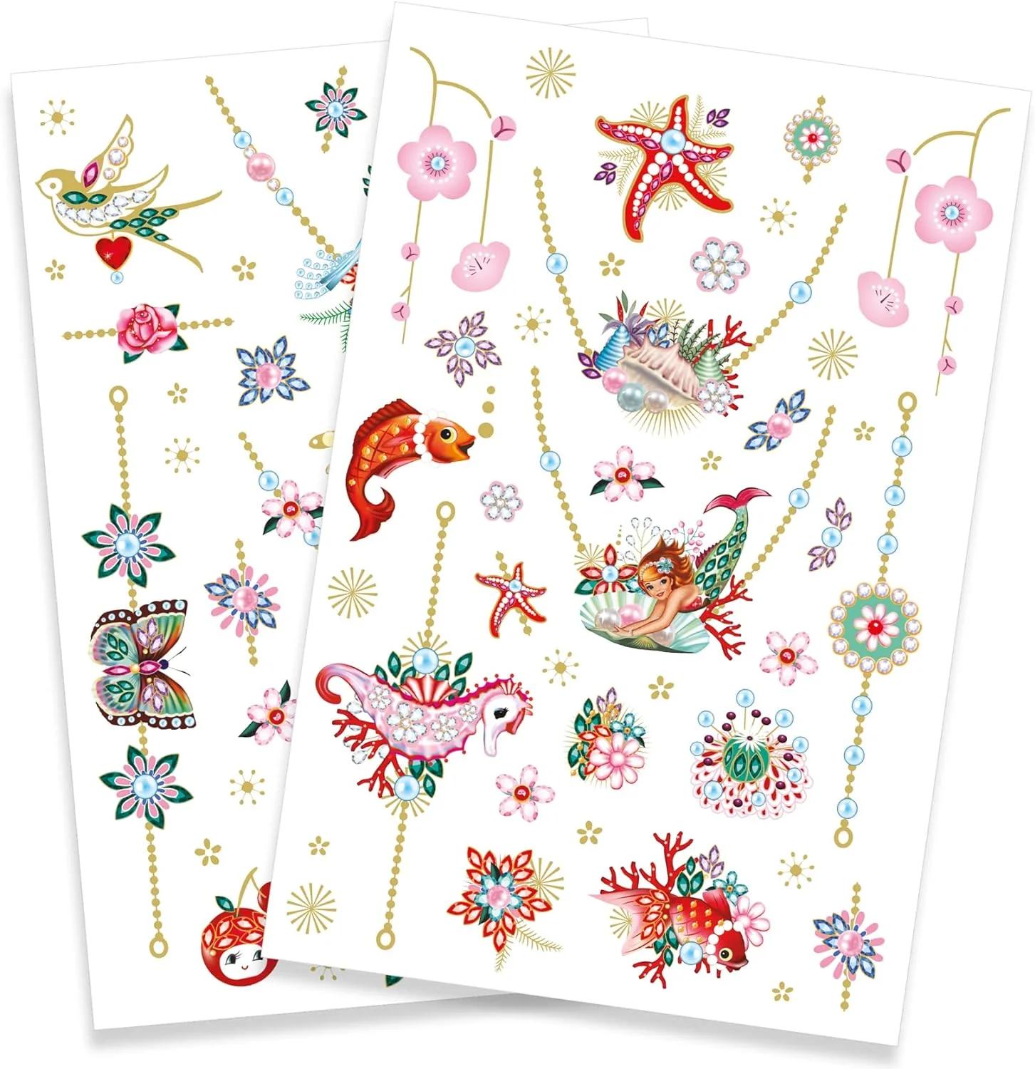 ¡Dos hojas de tatuajes con joyas metalizadas!