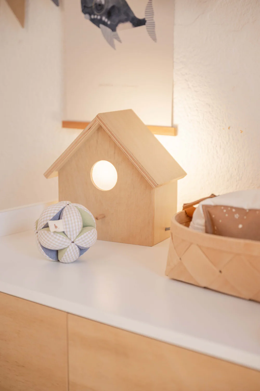 Veladora tipo casita para un cuarto infantil o de bebé de ensueño.