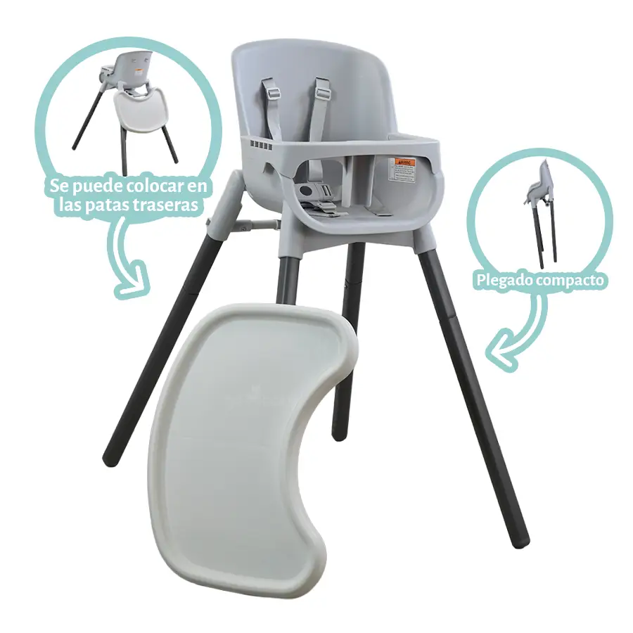 • Silla 4 en 1: 1) Silla periquera, 2) Booster, 3) Banco o taburete.
